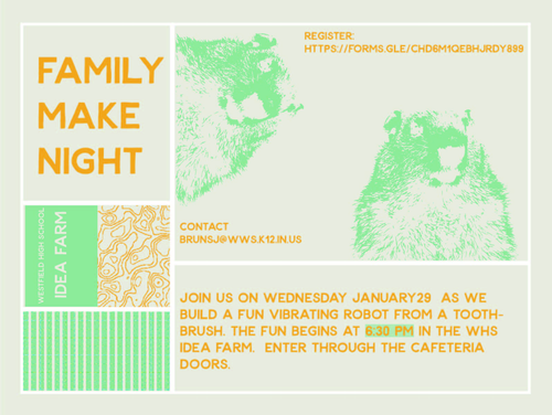 Idea Farm is a makerspace for all students in Westfield to come and make something awesome. We make things out of wood, plastic, fabric, computer code, and whatever else we can dream up and get our hands on. Projects are student selected and led.